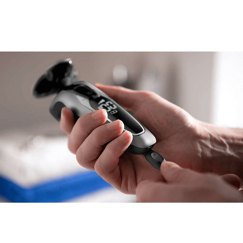 - صفحه نمایش دیجیتال کلیه اطلاعات لازم را به کاربر نمایش می دهد: میزان شارژ باتری به صورت عددی ، نمایشگر نظافت، نمایشگر شارژ ناکافی، نمایشگر زمان تعویض تیغه ها و نمایشگر قفل مسافرتی.