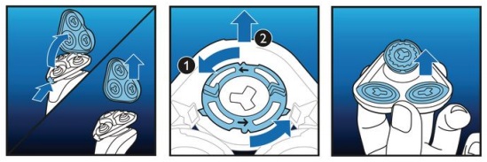 - تعویض تیغه ها بسیار راحت و با توجه به مدل دستگاه به یکی از دو صورت زیر (از چپ به راست) می باشد: